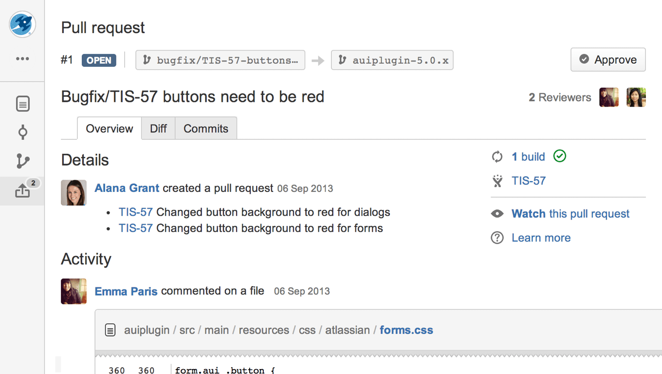 Entwickler dagegen profitieren durch die Integration mit JIRA: Die eingepflegten Änderungen können mit JIRA-Vorgängen verknüpft werden, sodass transparent ersichtlich ist, durch welche Änderung ein Bug gefixt oder ein Feature implementiert wird.