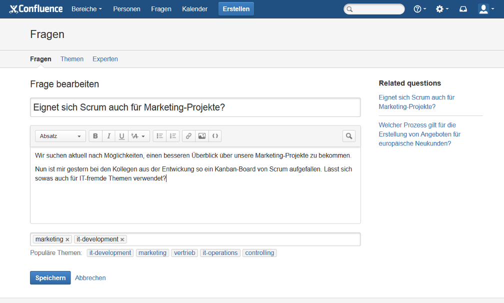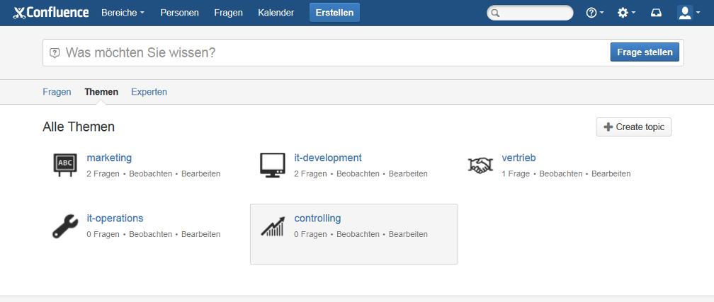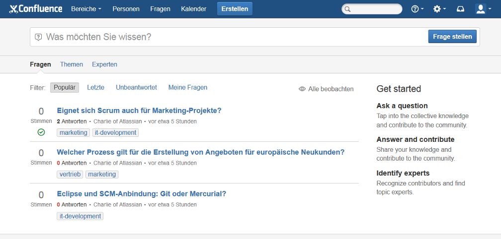 Durch Questions wird eine Plattform innerhalb von Confluence zur Verfügung gestellt, in der beliebige Fragen gestellt werden können, bspw.