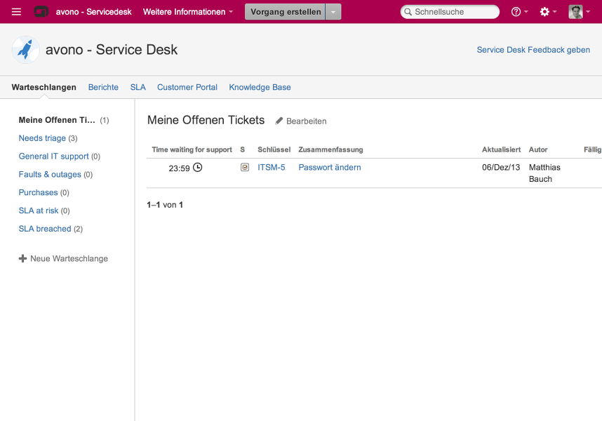 Neben den aus JIRA bekannten Dashboards und Gadgets zur Anzeige der zu bearbeitenden Tickets bietet JIRA Service Desk verschiedene Queues, in die die Anfragen der Kunden eingeordnet werden.