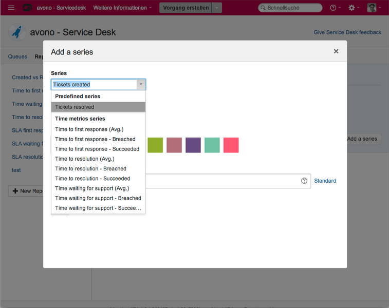 JIRA Service Desk stellt eine Reihe neuer Reports zur Verfügung, die auf der Basis der verschiedenen definierten SLAs und weiterer Kenngrößen wie z.B. der Anzahl der erstellten Vorgänge basieren.