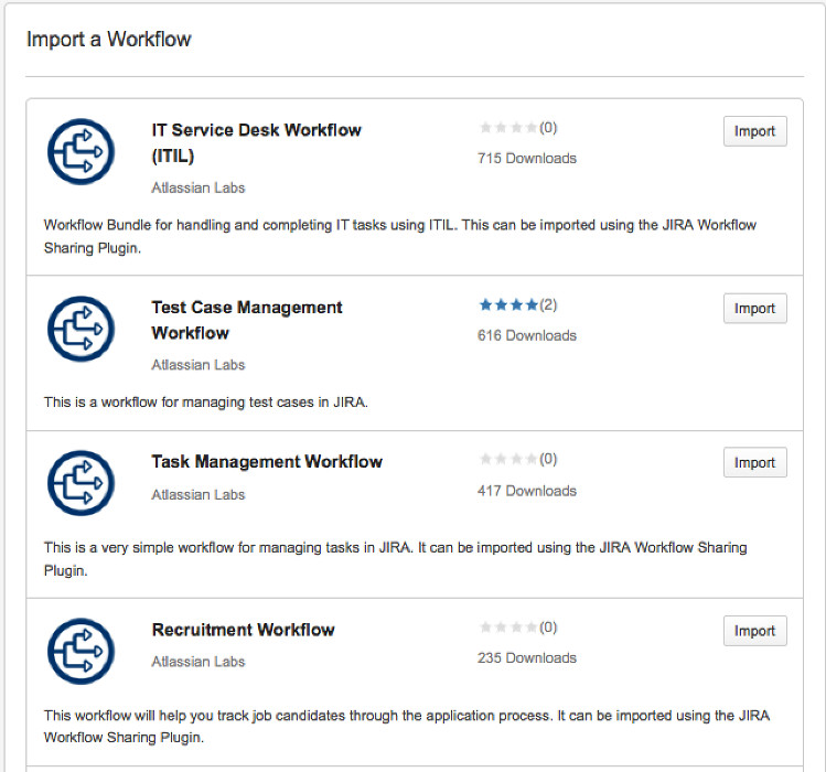 Eine weitere Hauptneuerung ist die Möglichkeit, erstellte Workflows zu Teilen. Im Atlassian Marketplace können nun Workflows bereitgestellt oder bezogen werden. Außerdem ist es möglich, zwischen verlinkten JIRA-Instanzen Workflows auszutauschen.
