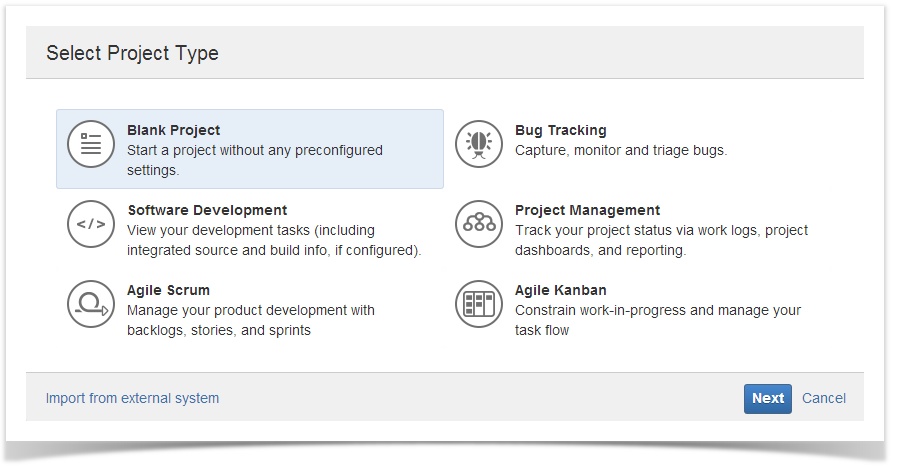 Last but not least möchte Atlassian zukünftig Projekt-Vorlagen für JIRA anbieten. Hierfür hat Atlassian in JIRA 6 bereits die Vorbereitungen getroffen. Wird in JIRA 6 ein neues Projekt angelegt, kann ein Project Template ausgewählt werden. Hiermit sammelt Atlassian Daten für die Implementierung der Templates in zukünftigen JIRA-Versionen. In JIRA 6 haben alle wählbaren Typen noch ein Blanko-JIRA-Projekt zur Folge.