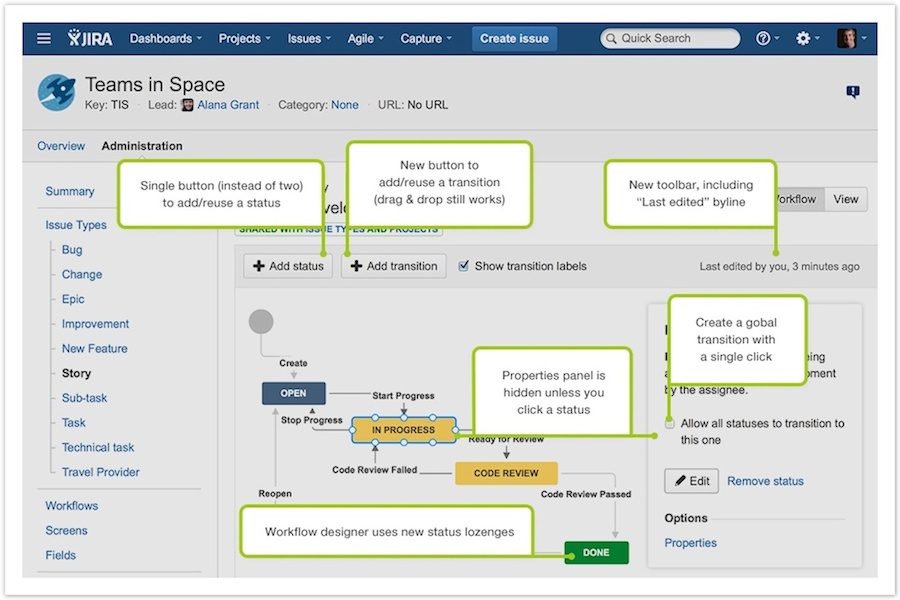 Da der neue Workflow-Designer mit den aktuellen Änderungen alle Möglichkeiten des klassischen Designers bietet, wurde dieser aus JIRA entfernt.