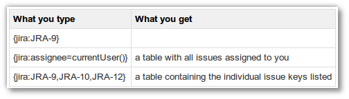 Das Makro wurde komplett überarbeitet und akzeptiert jetzt als Parameter einzelne Issue-Keys, kommaseparierte Issue-Keys oder JQL Abfragen.