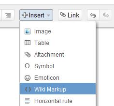 Den Button Einfügen in der Symbolleiste klicken und Wiki Markup auswählen