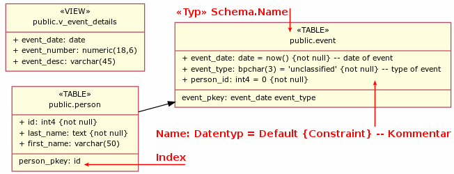 Seit der Anfang des Jahres veröffentlichten Version 5.4 des Confluence PlantUML Plugins kann dieses auch Datenbanken analysieren und deren Struktur grafisch darstellen.