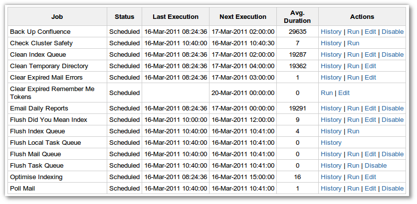 Mit Confluence 3.5 steht eine Benutzeroberfläche zur Verwaltung der Jobs auf dem Server zur Verfügung. Zuvor mussten Administratoren Änderungen direkt an den Konfigurationsdateien vornehmen.